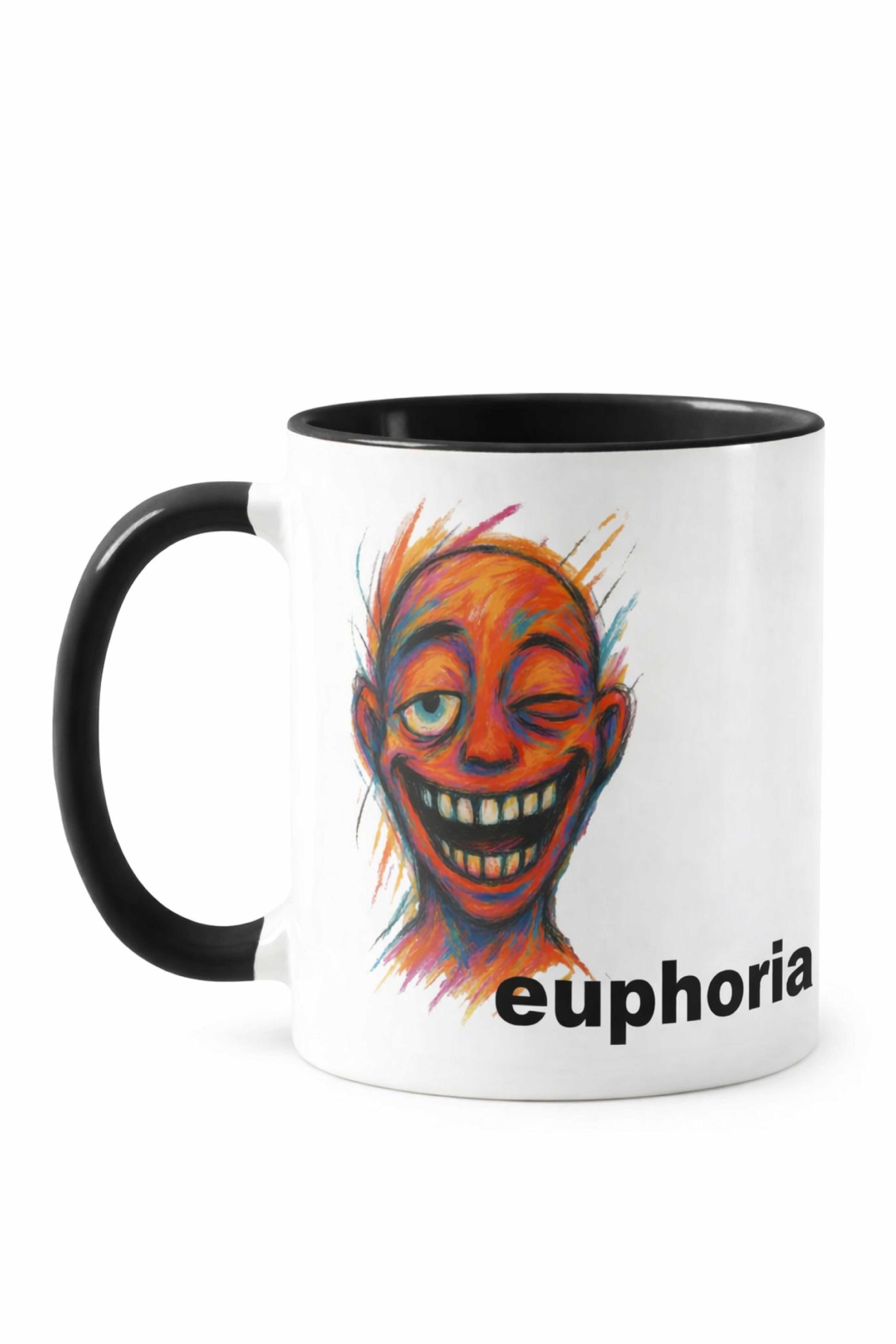Design expresiv, culori vibrante și un mesaj care spune tot. Ilustrația artistică redă o stare de energie pură și nebunie creativă. Ideală pentru cafeaua de dimineață sau pentru un cadou cu personalitate.